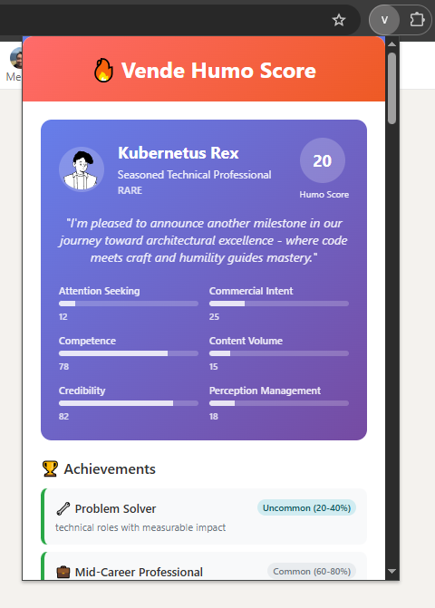 But it’s not a flat score, it adapts based on the user type. A salesperson spamming automation tools daily has a different “humo ceiling” than a burned-out developer posting memes about frameworks. How the humo score is exactly calculated depends on the type.